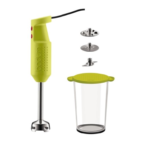 Description : Plastique, acier inoxydable, siliconeAccessoires : couteau, fouet et batteurLivré avec un récipient muni de son couvercle2 vitessesCouleur : vertPuissance : 300W
