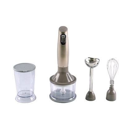 Description : Puissance : 300 W Mixeur, mélangeur Touche pulse - Fouet wiskSwitch On/OffArbre mélangeur amovible et compatible lave vaissellePied mixeur en acier inoxydable, compatible aliments chaudsLames en acier inoxydableGobelet avec couvercleRécipient pour mélanger avec couvercleMotif Maya spray marron
