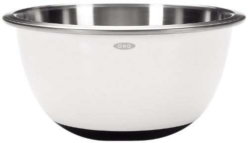 Description : Intérieur en inox résistant et hygiénique. Extérieur blanc et base en santoprène antidérapant, qui permet une excellente prise en main du bol à mixer, même avec les mains mouillées. Elégant, on peut également le présenter à table. Garanti lave-vaisselle