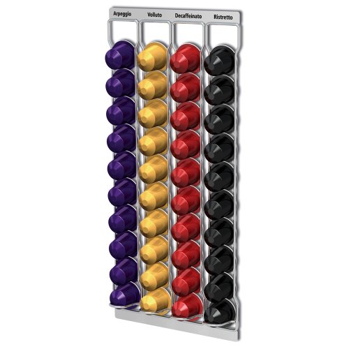 Description : Porte capsules Nespresso mural pouvant recevoir 40 capsules. Facile à installer, il se fixe grâce à un velcro autocollant dans un placard ou sur un mur. Très ingénieux et de grande capacité. 39 cm x 18.5 cm